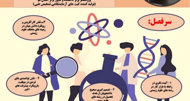 کارگاه آینده نگری شغلی رشته های علوم زیستی با رویکرد کارآفرینی و دانش بنیان زیرنظر پارک علم و فناوری استان قم و به همت شرکت دانش بنیان دانش ثمین پردیس رضوان توسط دکتر رضا فتوحی اردکانی برگزار می گردد. تاریخ و محل برگزاری این کارگاه 4 دی ماه 1401 ساعت 15:30 در قم، شهرک پردیسان، خیابان البرز، کوچه 1، پلاک 5 می باشد.علاقه مندان به شرکت در این کارگاه می توانند با شماره تماس 0933526990 در ارتباط باشند.